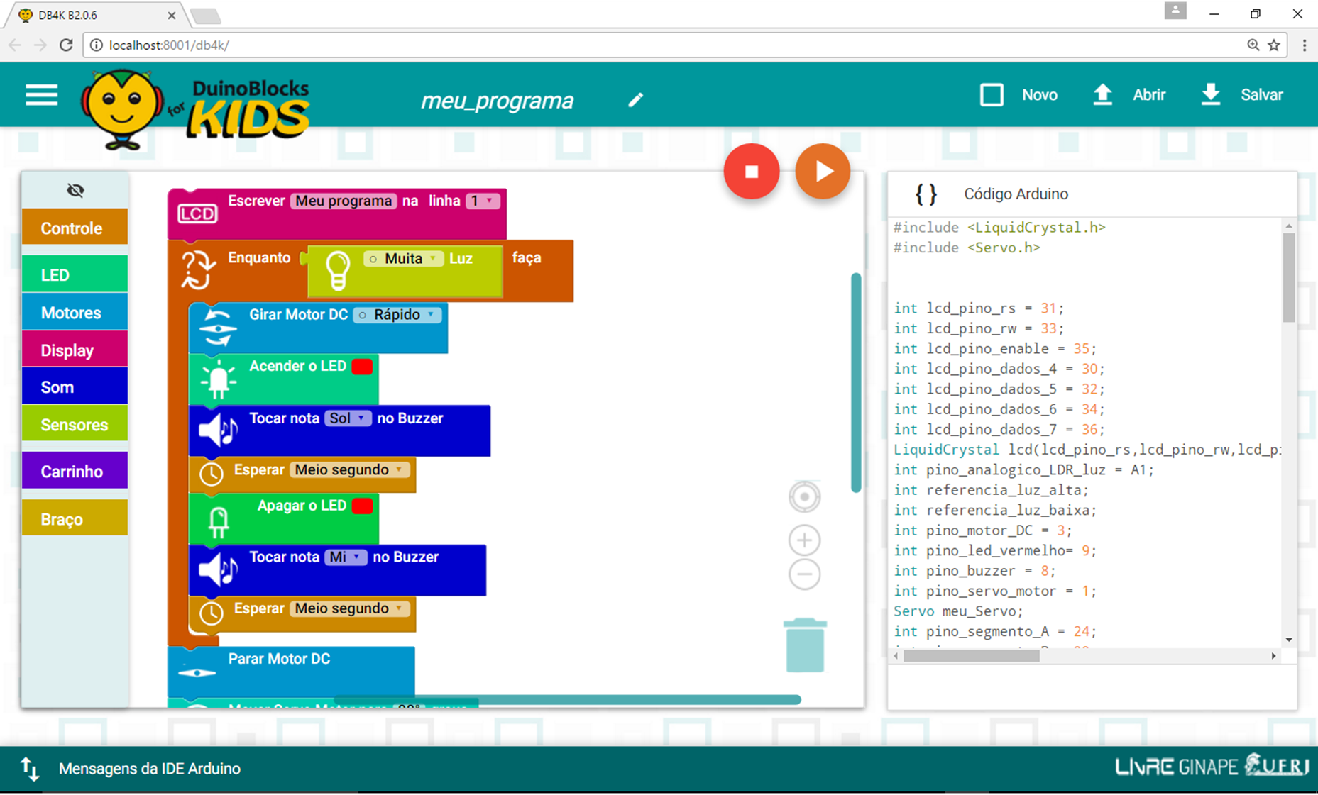 For more details about the DB4K Kit, you can access the DuinoBlocks4Kids Project Page (in Portuguese) and the related texts (in Portuguese) present in my Curriculum Vitae.